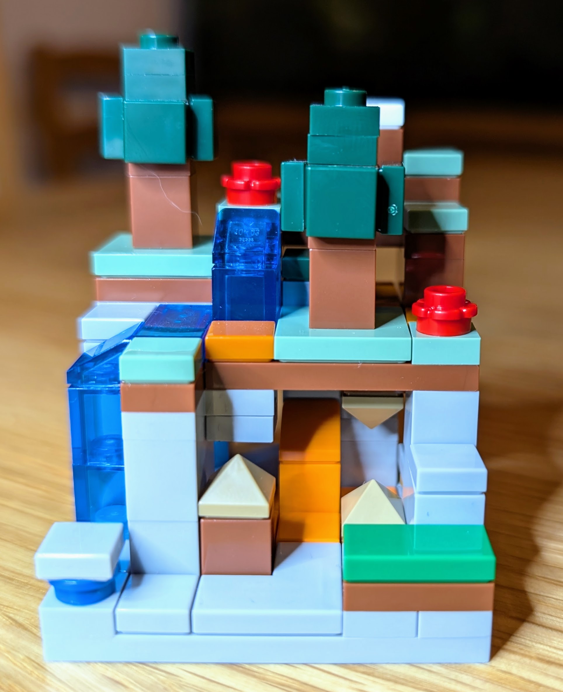 The entire set has a river and waterfalls running through it, in see-through blue pieces, that looks really nice and ties it all together. That river ends in this biome.